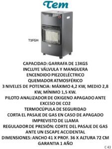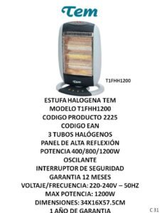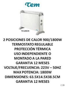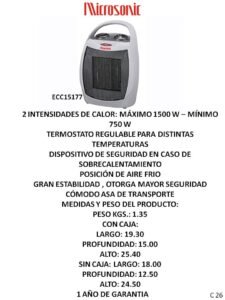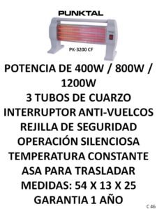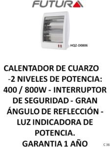 Estufas y calefactores CategoríasPUBLICIDAD A (Termotanques, Ventiladores, Extractores, Aires) B (Freezer, Micro-ondas, Heladeras, Frigobar) C (Calientacamas, Estufas, Calefactores varios) D (Cocinas, Lavarropas, Secarropas, Anafes, Hornos electricos) E (TV, Reloj, Monitores, Camara, DVD, Sintonizador de TV) F (Radios, Parlantes, Auriculares) G( Planchas, Aspiradoras, Maquina de coser) H (Planchitas, Secadores, Cortapelo, Depiladoras, Rizadores, Afeitadoras, Balanzas) J (Licuadoras, Jugueras, Sandwicheras, Mixer, Batidoras, Tostadoras, Cafeteras, Jarras elect., Rallador, Panetera, Freidoras, Multiprocesadoras, Soperas) K (Teléfonos) L (Soportes, Teclados, Linternas, Mouse) M(Pastores, Lampara sal, Lampara emergencia, Piscinas, Bombas) N (Celulares) P (Colchones, Sommiers, Almohadas, Sillas de Escritorio) O( Hidro-lavadoras, Selladora, Atornilladores, Destornilladores, Torno, Cepilladora, Bordeadora, Sierras, Lijadoras, Carretillas, Taladro, Esquiladoras) Estufas y calefactores C M-S-C -C S-M C-S S S S C-M-S M-S-C -C C-S M-C C S S-C S SC S-C Categoría: C (Calientacamas, Estufas, Calefactores varios) Reseñas de Clientes Escribir una reseña Escribí tu reseña Tu calificación * Título de tu reseña (opcional) Nombre (opcional) Email (opcional) Tu reseña * Enviar Reseña Este producto todavía no tiene reseñas. ¡Sé el primero! Productos relacionados Calientacamas y Calienta pies Leer más