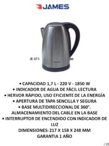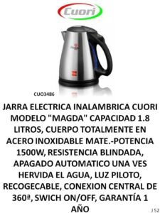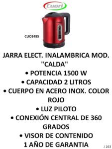 JARRAS ELECTRICAS Y CALDERA ELECTRICA CategoríasPUBLICIDAD A (Termotanques, Ventiladores, Extractores, Aires) B (Freezer, Micro-ondas, Heladeras, Frigobar) C (Calientacamas, Estufas, Calefactores varios) D (Cocinas, Lavarropas, Secarropas, Anafes, Hornos electricos) E (TV, Reloj, Monitores, Camara, DVD, Sintonizador de TV) F (Radios, Parlantes, Auriculares) G( Planchas, Aspiradoras, Maquina de coser) H (Planchitas, Secadores, Cortapelo, Depiladoras, Rizadores, Afeitadoras, Balanzas) J (Licuadoras, Jugueras, Sandwicheras, Mixer, Batidoras, Tostadoras, Cafeteras, Jarras elect., Rallador, Panetera, Freidoras, Multiprocesadoras, Soperas) K (Teléfonos) L (Soportes, Teclados, Linternas, Mouse) M(Pastores, Lampara sal, Lampara emergencia, Piscinas, Bombas) N (Celulares) P (Colchones, Sommiers, Almohadas, Sillas de Escritorio) O( Hidro-lavadoras, Selladora, Atornilladores, Destornilladores, Torno, Cepilladora, Bordeadora, Sierras, Lijadoras, Carretillas, Taladro, Esquiladoras) JARRAS ELECTRICAS Y CALDERA ELECTRICA S M-C SS S M-C-S CC M-S-C -C S M-C M- CC-S S-C M-C-S M-S Categoría: J (Licuadoras, Jugueras, Sandwicheras, Mixer, Batidoras, Tostadoras, Cafeteras, Jarras elect., Rallador, Panetera, Freidoras, Multiprocesadoras, Soperas) Reseñas de Clientes Escribir una reseña Escribí tu reseña Tu calificación * Título de tu reseña (opcional) Nombre (opcional) Email (opcional) Tu reseña * Enviar Reseña Este producto todavía no tiene reseñas. ¡Sé el primero! Productos relacionados JUGUERAS Leer más PANETERA, POP, MAQ HELADO, YOGURTERA,BALANZA, MAQ HIELO,OLLA PRESION Leer más LICUADORAS Leer más SANDWICHERAS Leer más