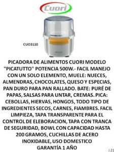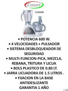 PROCESADORAS, PICADORAS, RALLADOR, MULTI-PROCESADORAS CategoríasPUBLICIDAD A (Termotanques, Ventiladores, Extractores, Aires) B (Freezer, Micro-ondas, Heladeras, Frigobar) C (Calientacamas, Estufas, Calefactores varios) D (Cocinas, Lavarropas, Secarropas, Anafes, Hornos electricos) E (TV, Reloj, Monitores, Camara, DVD, Sintonizador de TV) F (Radios, Parlantes, Auriculares) G( Planchas, Aspiradoras, Maquina de coser) H (Planchitas, Secadores, Cortapelo, Depiladoras, Rizadores, Afeitadoras, Balanzas) J (Licuadoras, Jugueras, Sandwicheras, Mixer, Batidoras, Tostadoras, Cafeteras, Jarras elect., Rallador, Panetera, Freidoras, Multiprocesadoras, Soperas) K (Teléfonos) L (Soportes, Teclados, Linternas, Mouse) M(Pastores, Lampara sal, Lampara emergencia, Piscinas, Bombas) N (Celulares) P (Colchones, Sommiers, Almohadas, Sillas de Escritorio) O( Hidro-lavadoras, Selladora, Atornilladores, Destornilladores, Torno, Cepilladora, Bordeadora, Sierras, Lijadoras, Carretillas, Taladro, Esquiladoras) PROCESADORAS, PICADORAS, RALLADOR, MULTI-PROCESADORAS S -C S C-S S-C S M- S-C Categoría: J (Licuadoras, Jugueras, Sandwicheras, Mixer, Batidoras, Tostadoras, Cafeteras, Jarras elect., Rallador, Panetera, Freidoras, Multiprocesadoras, Soperas) Reseñas de Clientes Escribir una reseña Escribí tu reseña Tu calificación * Título de tu reseña (opcional) Nombre (opcional) Email (opcional) Tu reseña * Enviar Reseña Este producto todavía no tiene reseñas. ¡Sé el primero! Productos relacionados FREIDORAS CON Y SIN ACEITE Leer más JARRAS ELECTRICAS Y CALDERA ELECTRICA Leer más PANETERA, POP, MAQ HELADO, YOGURTERA,BALANZA, MAQ HIELO,OLLA PRESION Leer más SOPERAS Leer más